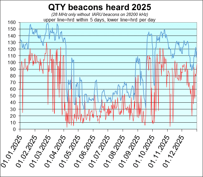 Grafiken zur Hörbarkeit der 10m Baken bei DL8WX: